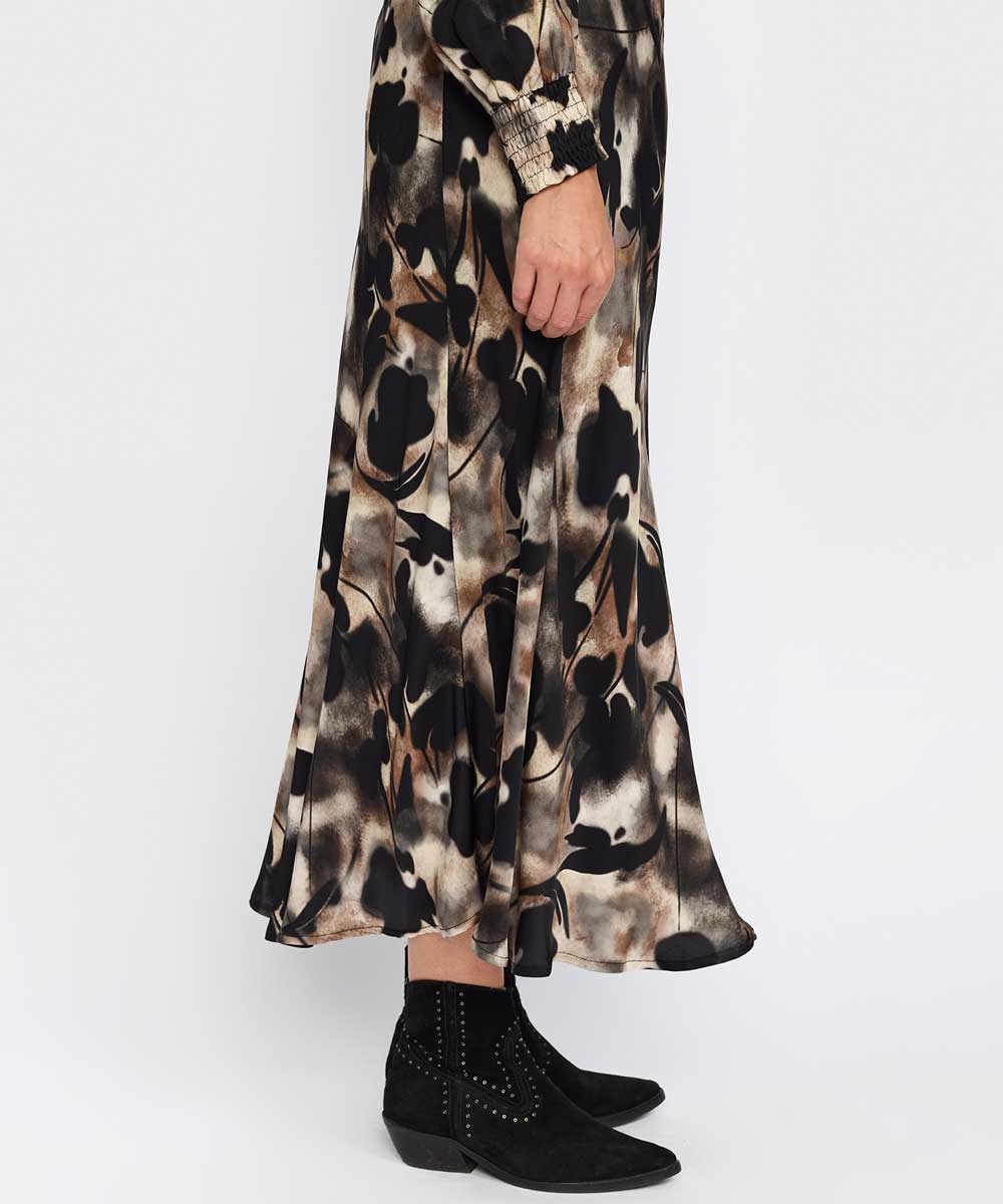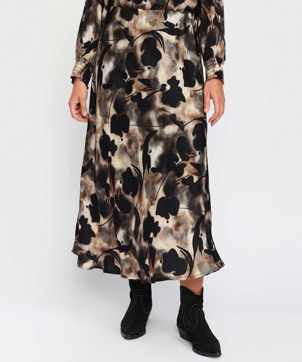 Georgina är en fin kjol från 2-Biz. Kjolen har skön resår i midjan och en A-linjeformad siluett. Superfin att styla till blus i samma mönster för en fin festlook.