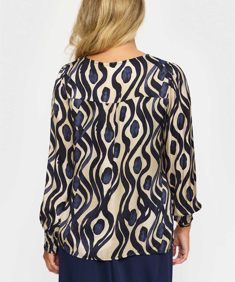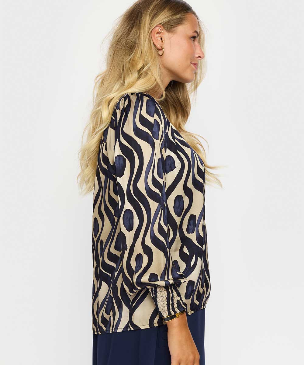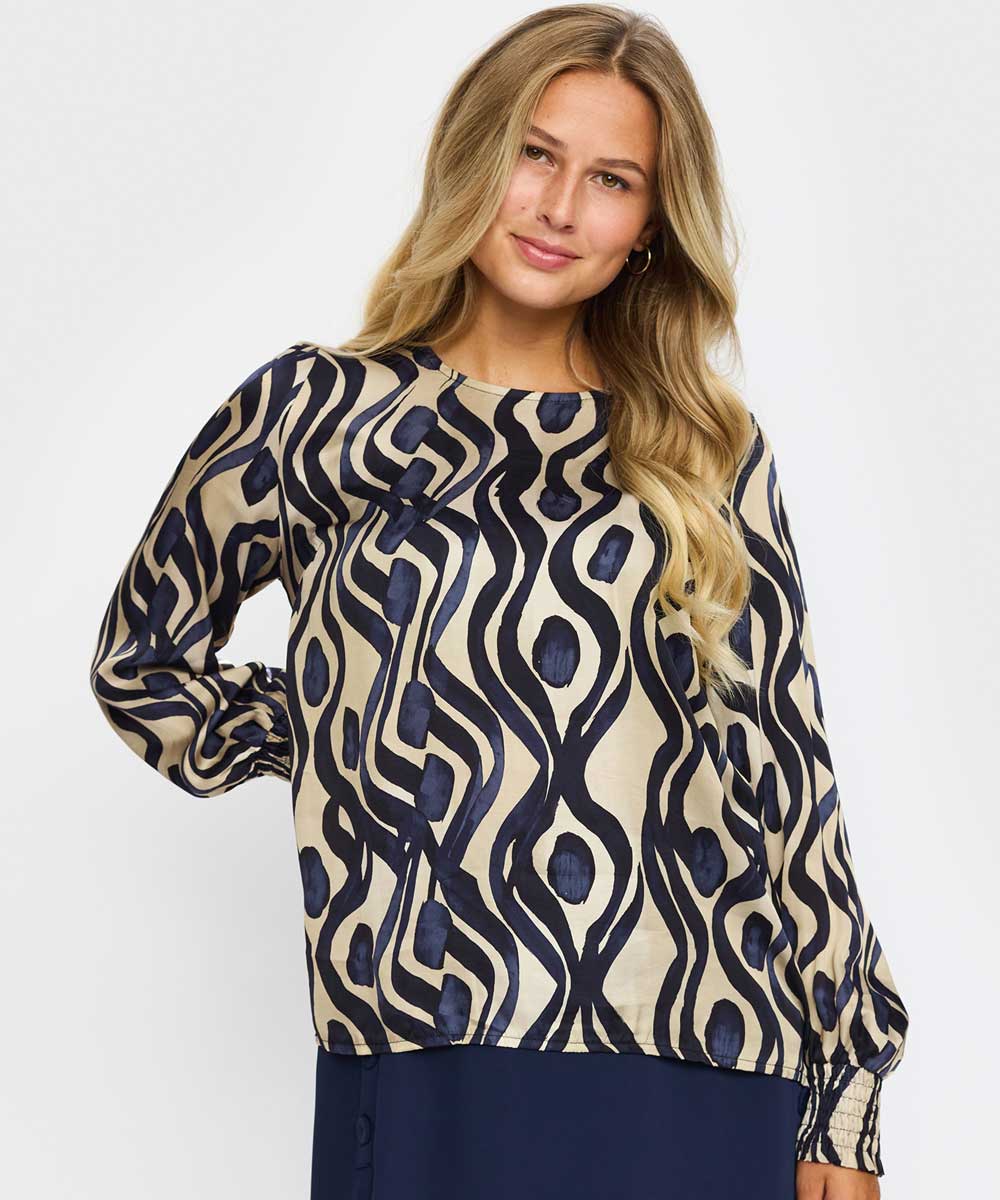 Susine är en vacker blus från 2-Biz. Blusen har rund halsringning, långa ärmar med smock vid ärmsluten och en rak passform.
