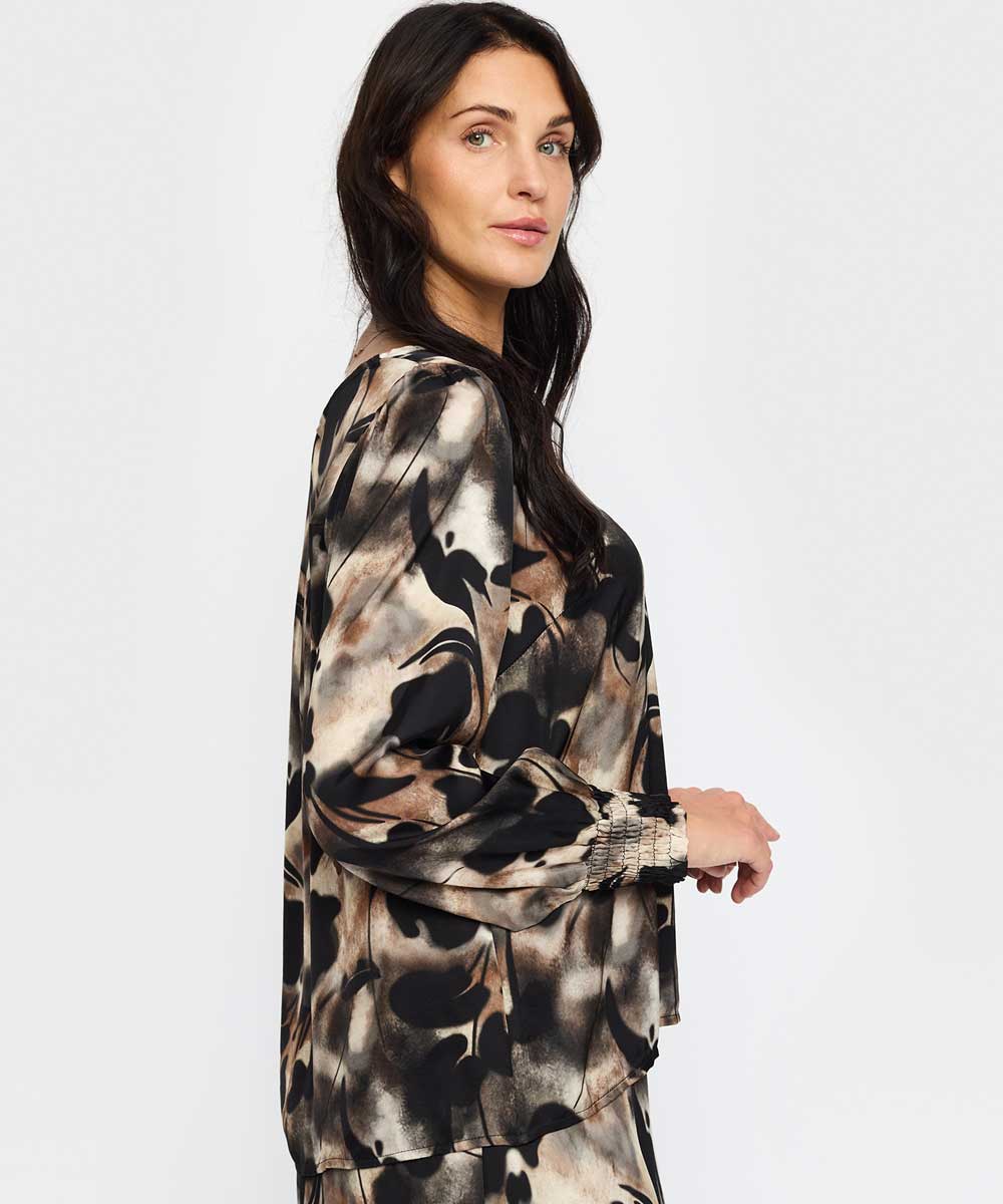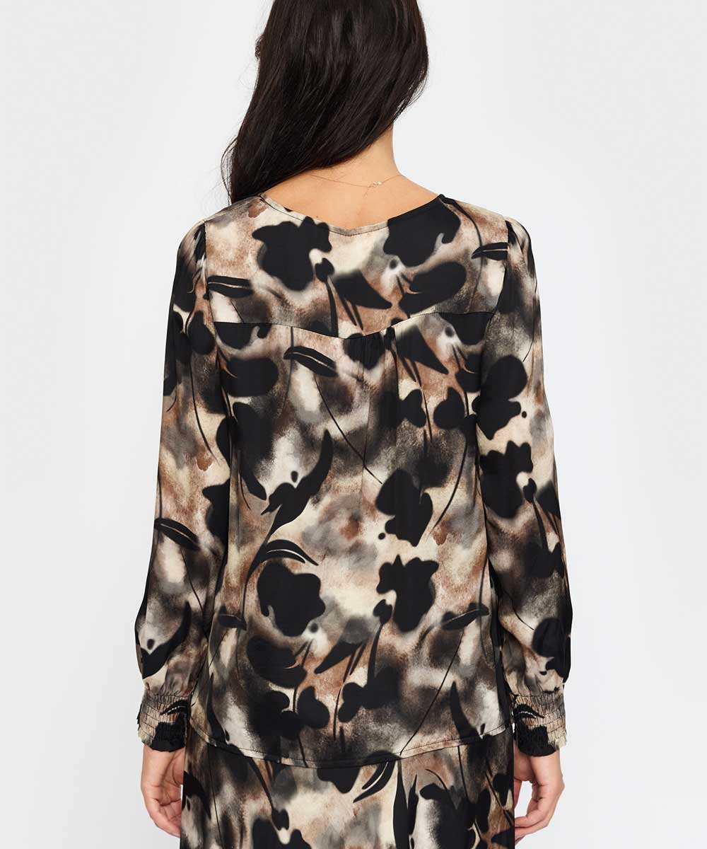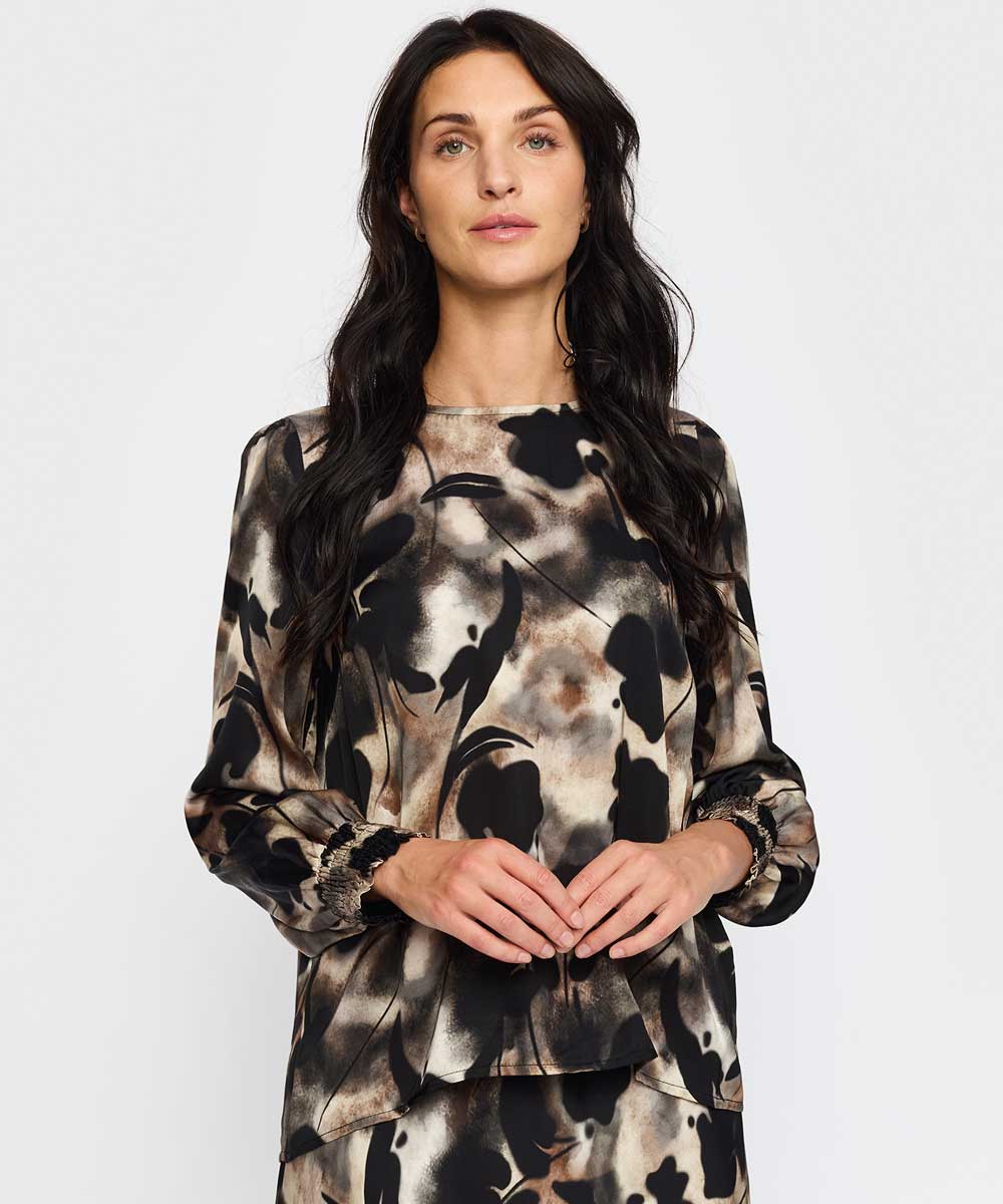 Susine är en vacker blus från 2-Biz. Blusen har rund halsringning, långa ärmar med smock vid ärmsluten och en rak passform.