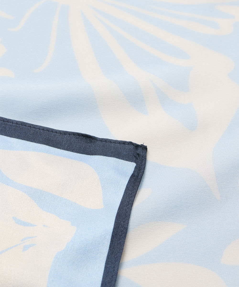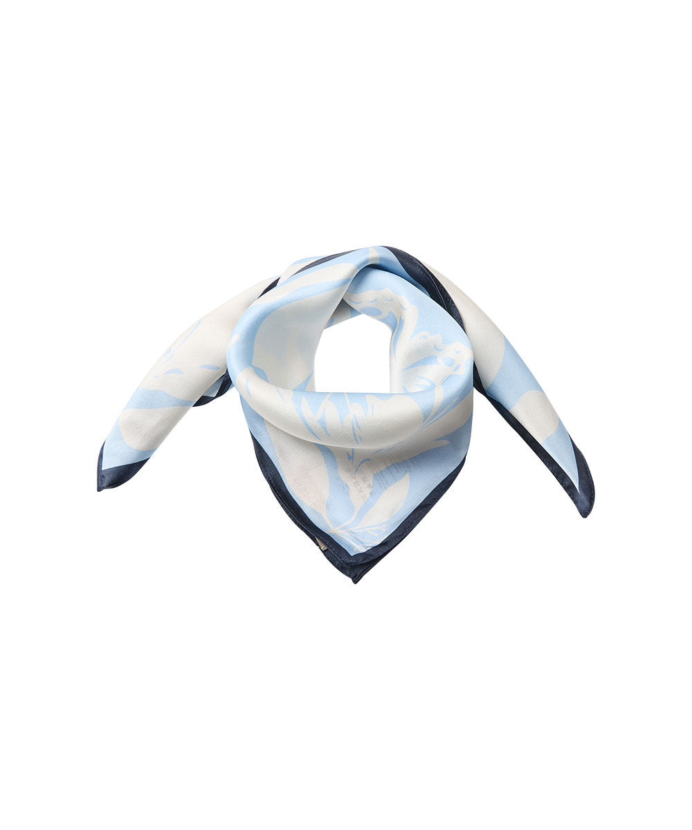 CARREN 1 är en scarf i 100% siden från Soyaconcept. Denna eleganta scarf har ett vackert abstrakt tryck med en slät textur och färdiga kanter. Den kan med fördel knytas runt halsen eller fästas i en handväska för en sofistikerad touch.
