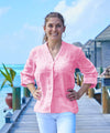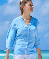 Favoritblusen i linne. Blusen har V-hals med liten ståkrage som ligger fint mot halsen. 3/4lång ärm med tamp för uppvik. Helknäppt fram med bröstfickor. Rundade hörn nedtill och något längre bak.