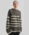 Ovalis är en fin randig stickad tröja med hög krage från Second Female. Tröjan har en mjuk och lätt ull-mohairblandning med hög krage och nedsänkta axlar med extra långa ärmar. Slitsar i sidorna nertill och en skön avslappnad passform.