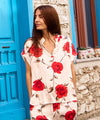 Rose är en fin blus med härlig blombård nertill från Mix By Heart. Blusen har v-ringad hals,  knäppning, långa ärmar och en avslappnad passform.