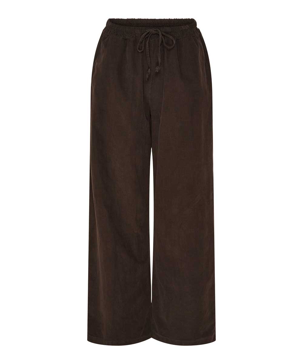 Kiana är ett par fina superbekväma byxor från Marta Du Château i babycord. Byxorna har en skön resår i midjan med snörning och hellånga vida ben. De är mycket mångsidiga och kan stylas med både skjortor och blusar.