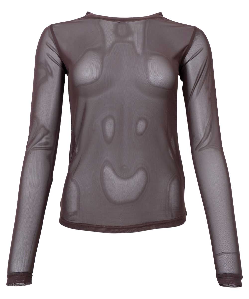 Annie mesh topp är en tröja i tunt meshtyg från Black Colour. Toppen har tight passform med rund halsringning och långa ärmar. Snygg att styla till till både kjol, byxor och under en stickad tröja.