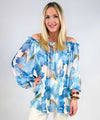 Härlig rosamönstrad chiffongblus från Love Forever. Vid halsringning med resår, långa ärmar med resår vid ärmsluten och lös skön passform.