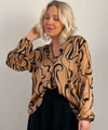 Ellen är en vacker satintunika från Ezence. Tunikan har v-ringad hals med dekorativt veck fram, långa ärmar med resår i ärmsluten och en fin a-linje formad siluett. En tunika med vackert mönster.