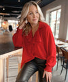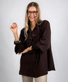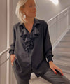 Härlig blus med volanger framtill från Ezence. Blusen har klassisk skjortkrage och knappstängning fram, långa ärmar med smock vid ärmsluten och en lös och skön passform. Blusen kommer i storlek onesize.