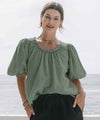 Mickis är en fin linneblus från Chica London. Blusen har rund halsringning som kantas av volang och härliga korta puffärmar. En rak skön passform.