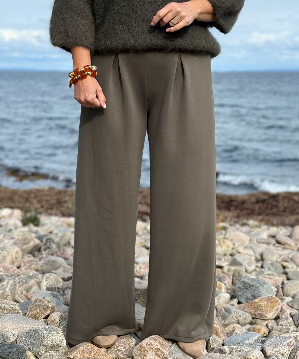 Blue är en härlig mjukisbyxa med snygg design från Ezence. Byxorna har skön resår i midjan, sydda veck upptill fram och raka vida ben. Byxorna kommer i storlek onesize och passar mellan storlek 36-42.
