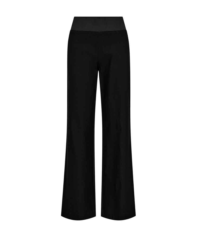 Shantal är ett par mjukla byxor från Freequent. Byxorna har en enkel silhuett med extra hög midja med resår, bakfickor, rak passform och utsvängda ben.