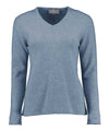 Sofistikerad cashmeretröja med smickrande A-linje form och v-ringning. Dekorativ stickning bak.