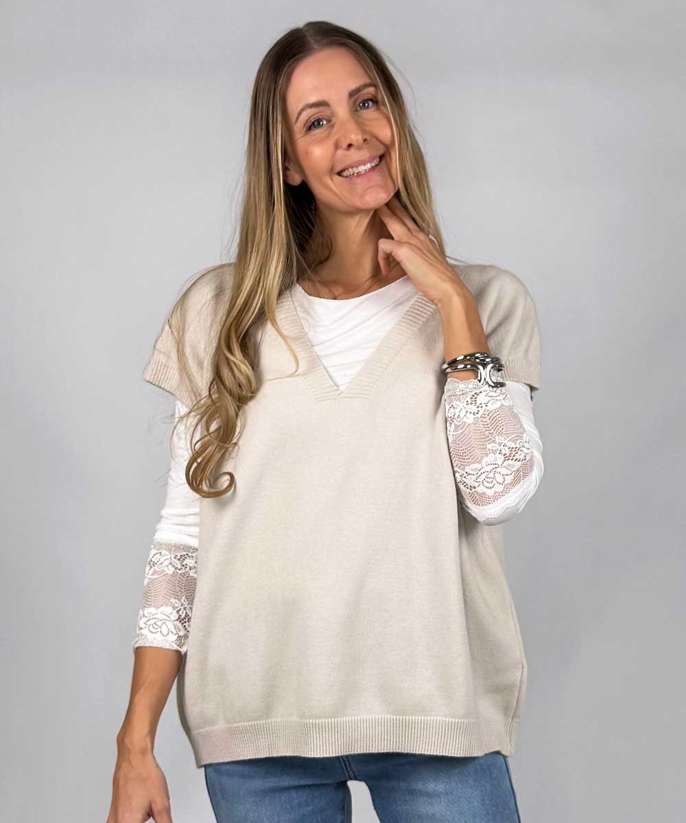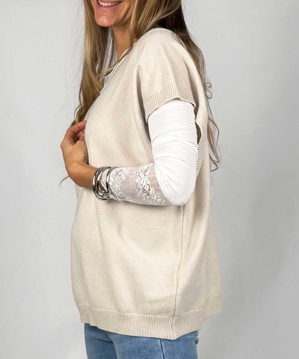 VICKI Stickad Väst - Beige