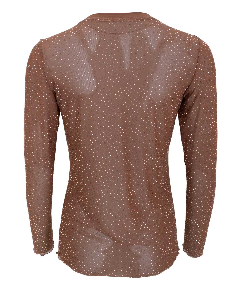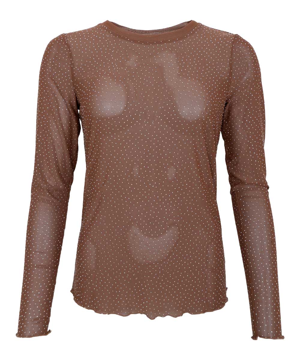 Alexis är en fin topp i mesh från Black Colour. Toppen har rund halsringning, långa ärmar, silverstrass och en normal passform.
