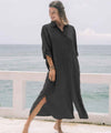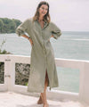 Aviva är en härlig linneklänning från Ezence. Klänningen har en skjortdesign med krage, knappar fram, uppkavlade ärmar med knapp och slitsar i sidorna nertill. En skön klänning med rak lös passform.