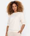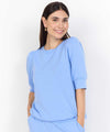 Banu 83 är en mycket bekväm topp i en mjuk sweatshirtkvalitet från Soyaconcept. Toppen har rund halsringning och snygga korta puffärmar.