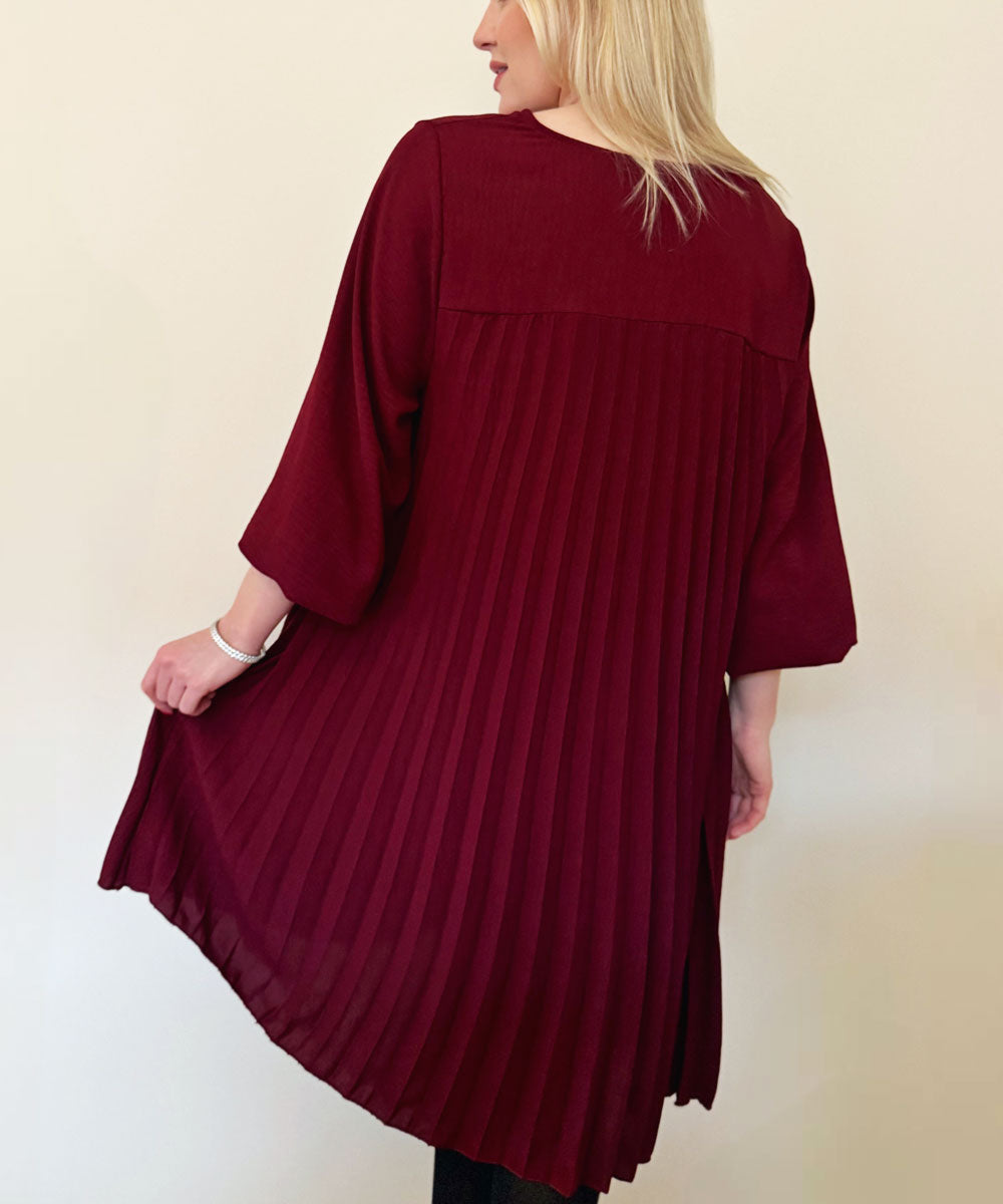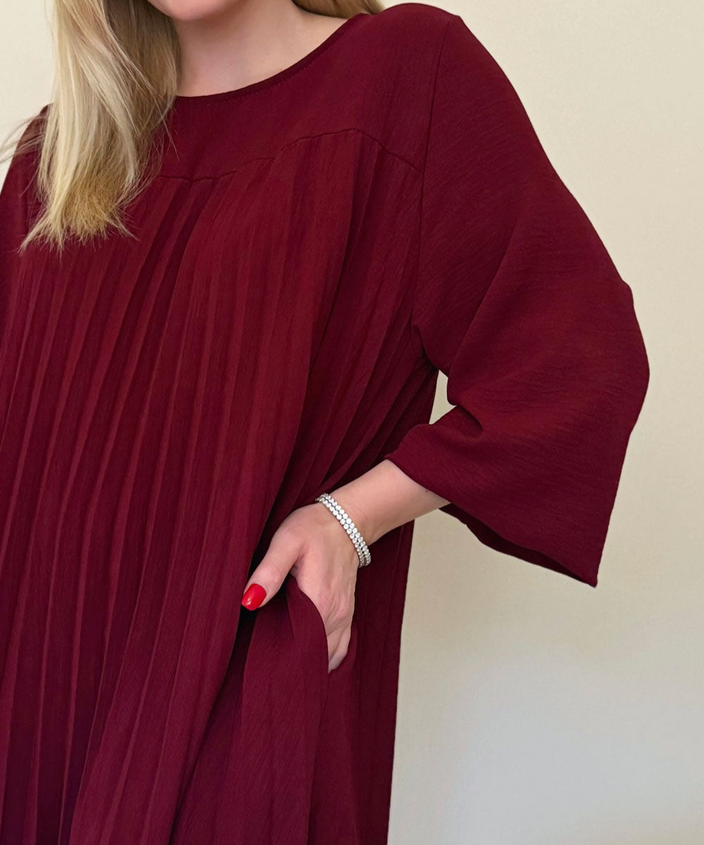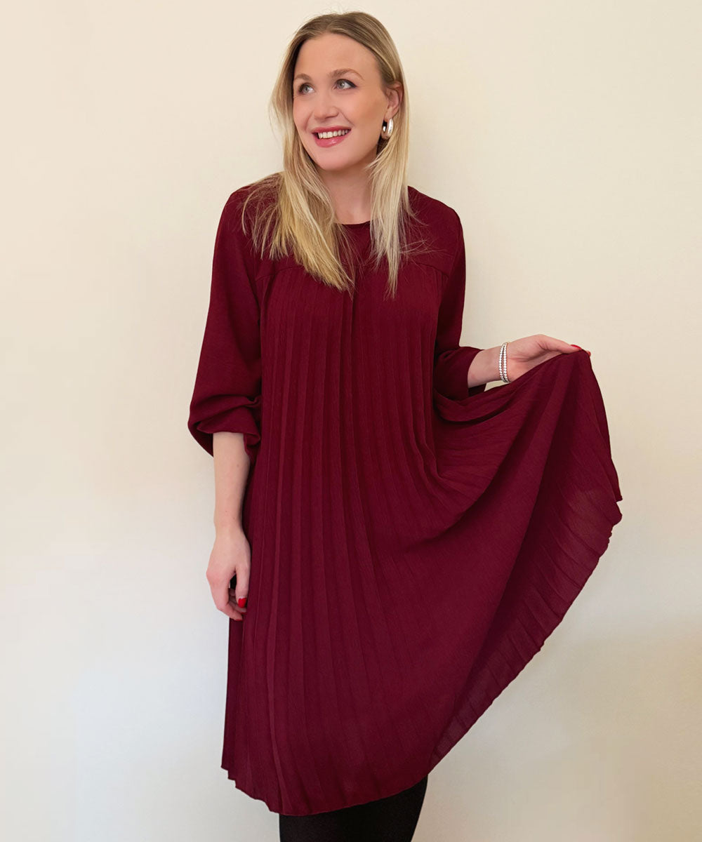 Fin plisserad klänning i kort modell från Chica London. Klänningen har rund halsringning, långa ärmar, fickor i sidorna och en rak lös passform.