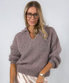 Collar är en snygg mohair tröja från Ezence. Tröjan har v-ringad hals med krage, långa ärmar, ribbade muddar och en lös skön passform.