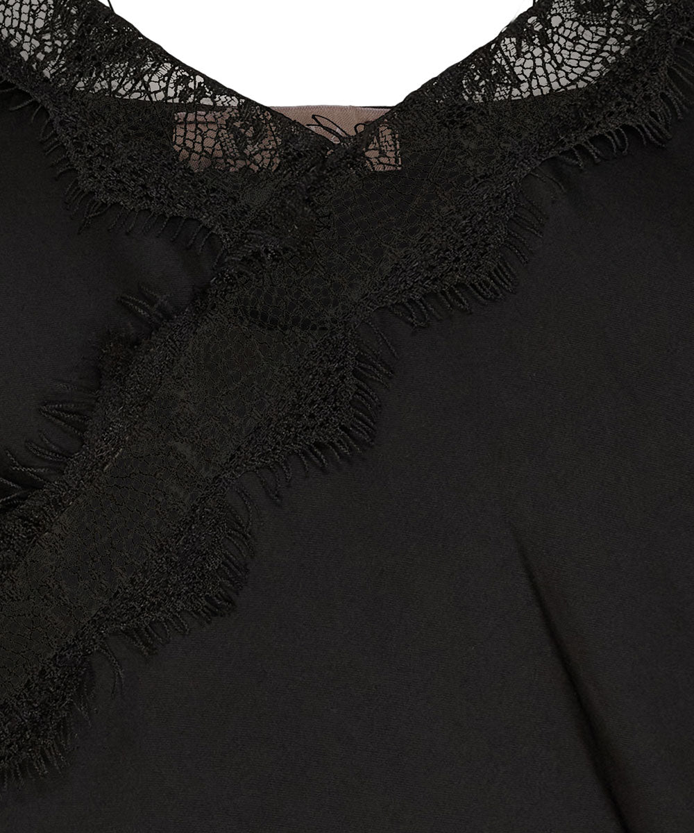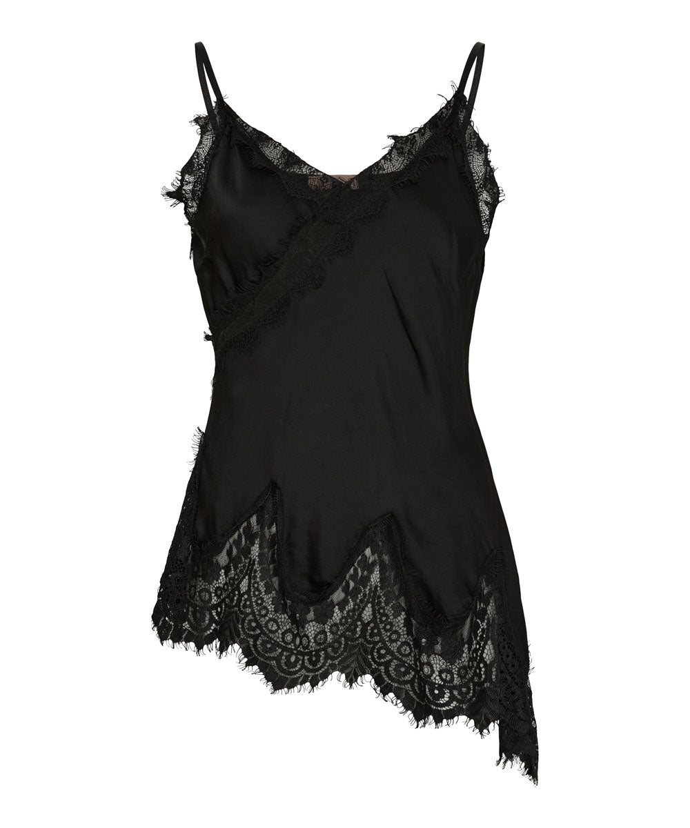 Dream är ett superfint linne med spetsdetaljer från Marta Du Chateau. Linnet har smala axelband, v-ringad hals, snedskuren nertill och kantas av spets nertill och längs urringningen.