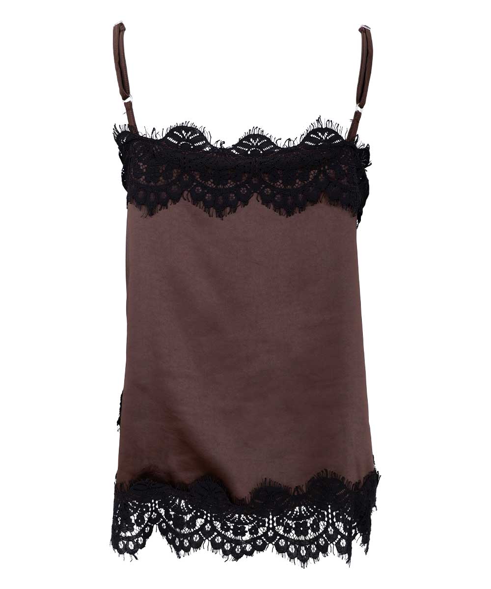 Evie är ett fint linne i satin och spets från Black Colour. Linnet har smala axelband och kantas av spets upptill och nertill.