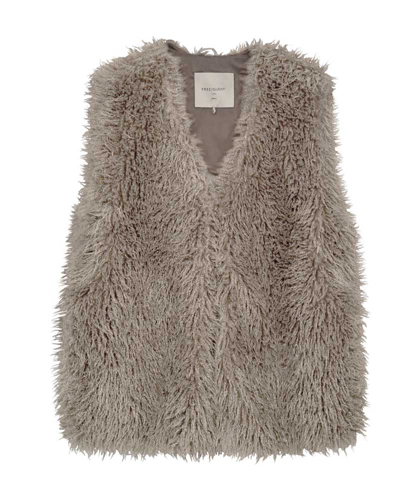 Fine är en härlig väst i fuskpäls från Freequent. Västen har v-ringning framtill, dold hyska och hake-knäppning framtill och en normal passform. Västen har ett mjukt fransig material med foder.