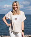 Flower är en fin linnetopp från Chica London. Toppen har rund halsringning, korta ärmar, en rak passform och ett fint blommönster av paljetter på bröstet.
