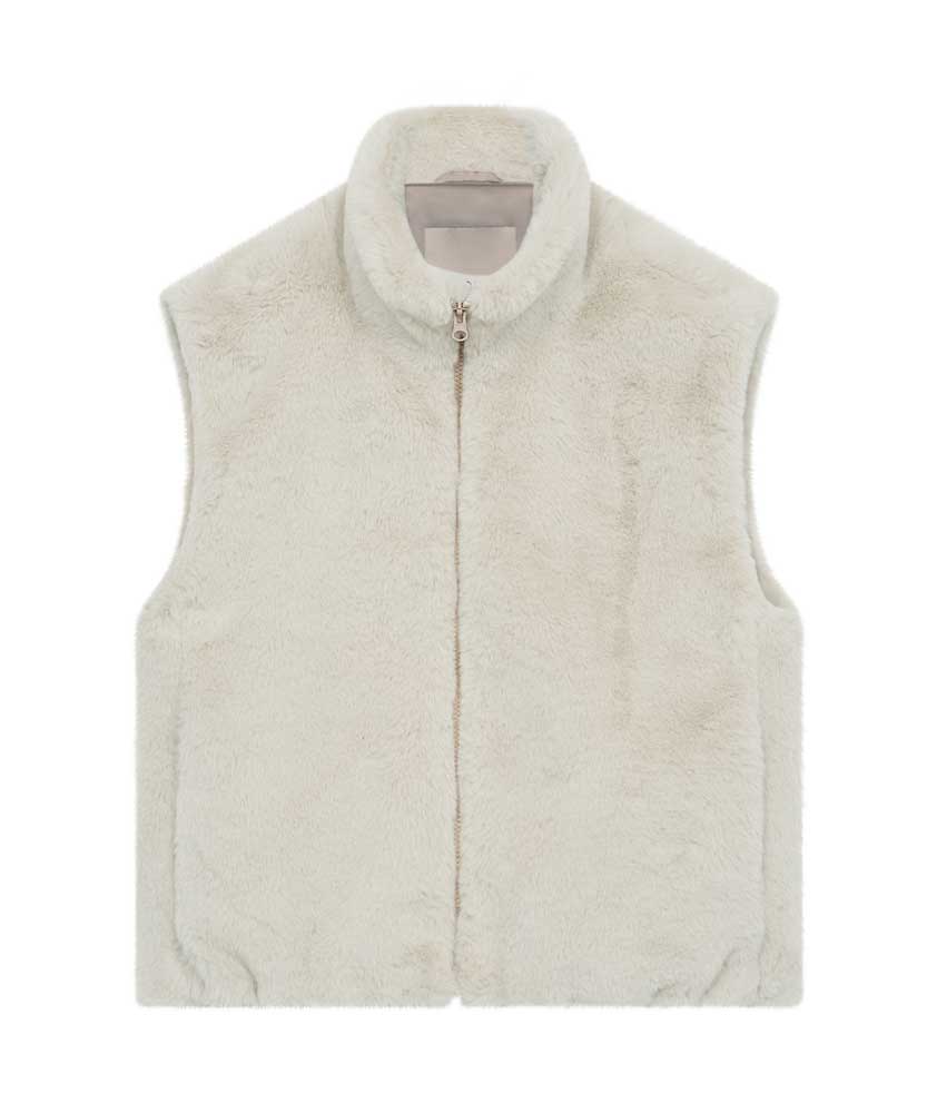 Fony är en fin väst från Freequent i ett mjukt fuskpälsmaterial. Denna härliga väst kombinerar värme och elegans på bästa sätt. Västen har dragkedja fram, fickor i sidorna, hög krage och  normal passform med resår i nederkanten för en fin ballongeffekt.