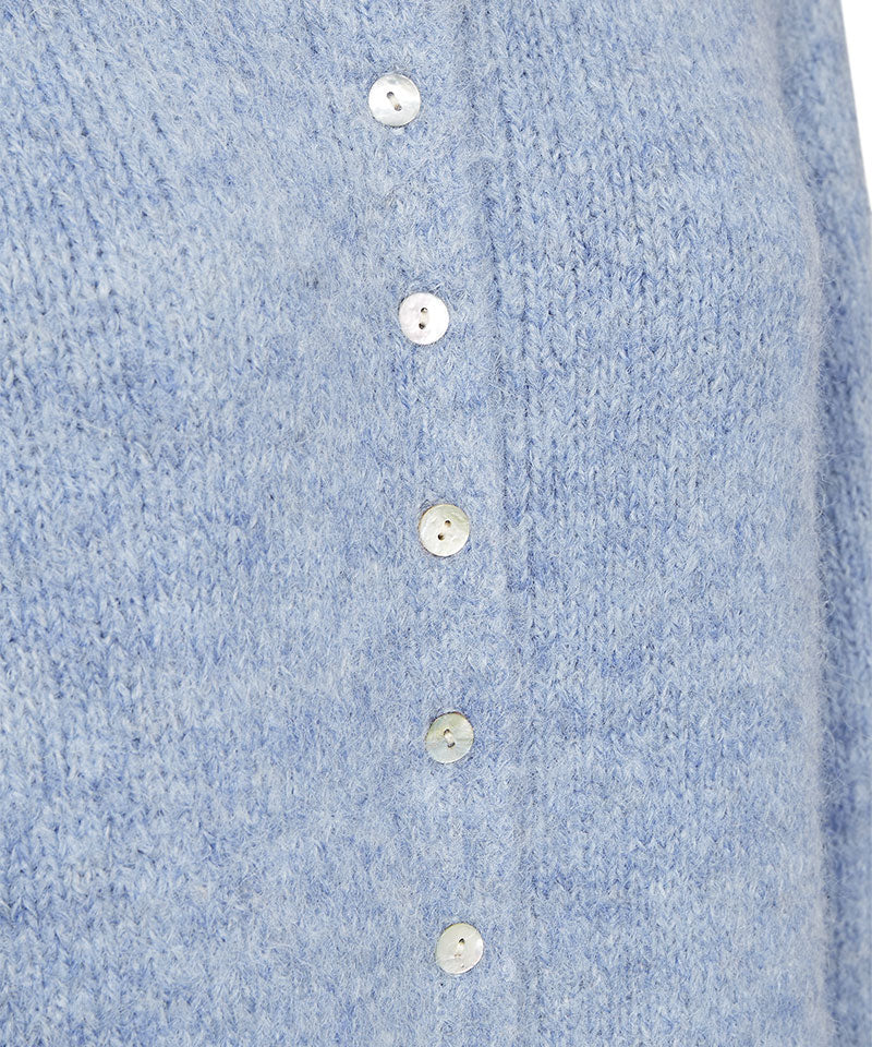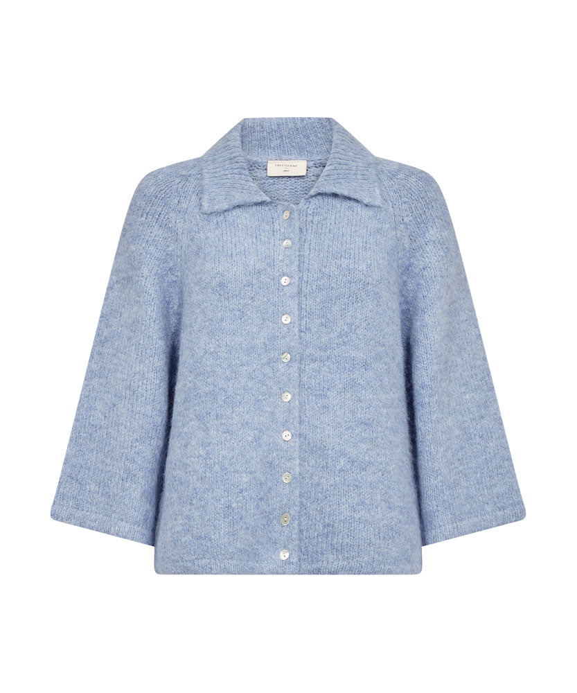 Härlig cardigan från Freequent i ett mjukt, stickat material. Koftan har en enkel silhuett med trekvartsärmar, vida ärmar, krage samt knappar framtill.