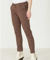 Mjuka och strechiga chinos från Isay. Byxan har normalhög midja och smala ben i ankellängd med liten slits. Snedställda fickor i sidorna och falska fickor bak.