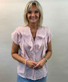 Jane är en fin blus från Mix By Heart. Blusen har knappar fram, volanger längs urringningen och över axlarna och ett något transparent tyg.