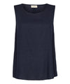 Topp från Freequent i lätt och läcker linnekvalitet. Toppen är enkel i modellen med knappdetaljer bak, rund halsringning och lös passform. En vacker topp i läckraste kvalitet.