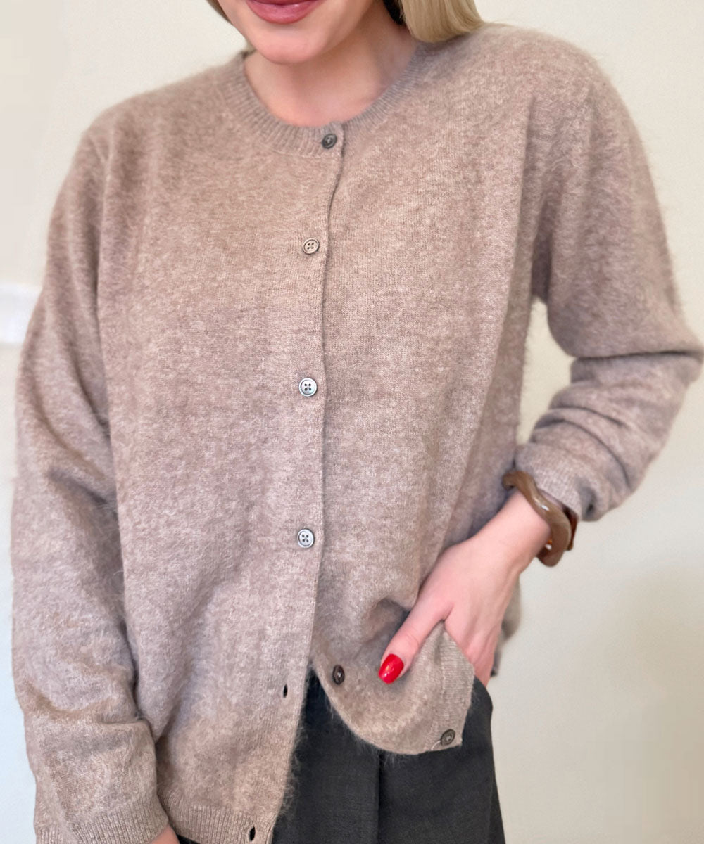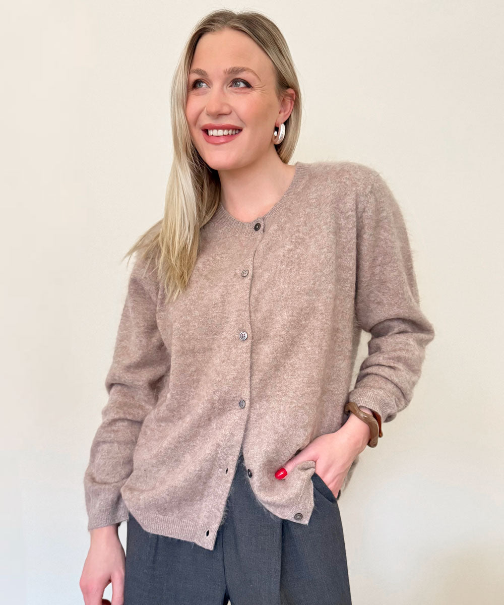 Lily är en vacker cardigan i mjuk cashmere från Carla F. Denna cardigan har rund halsringning, långa ärmar och knappar framtill.