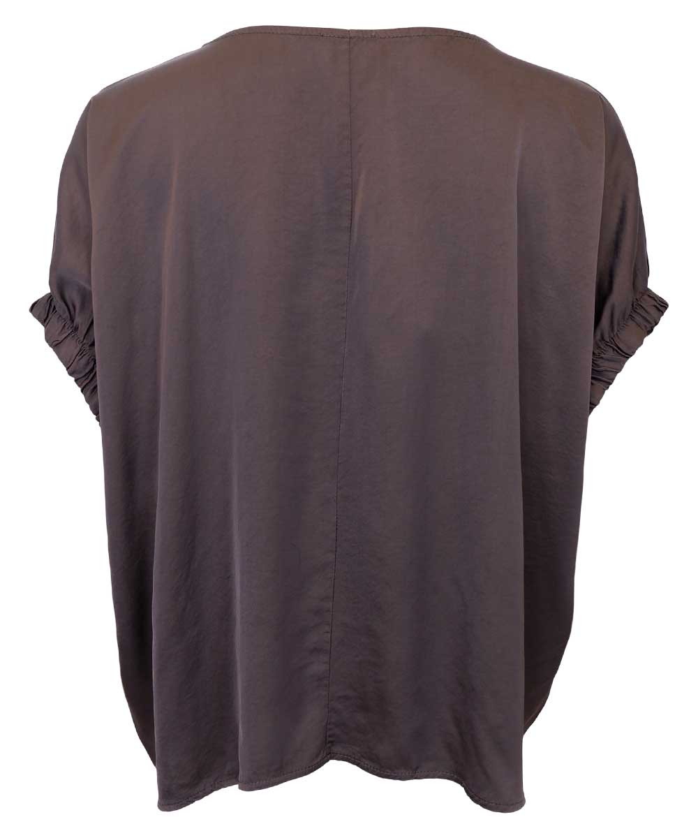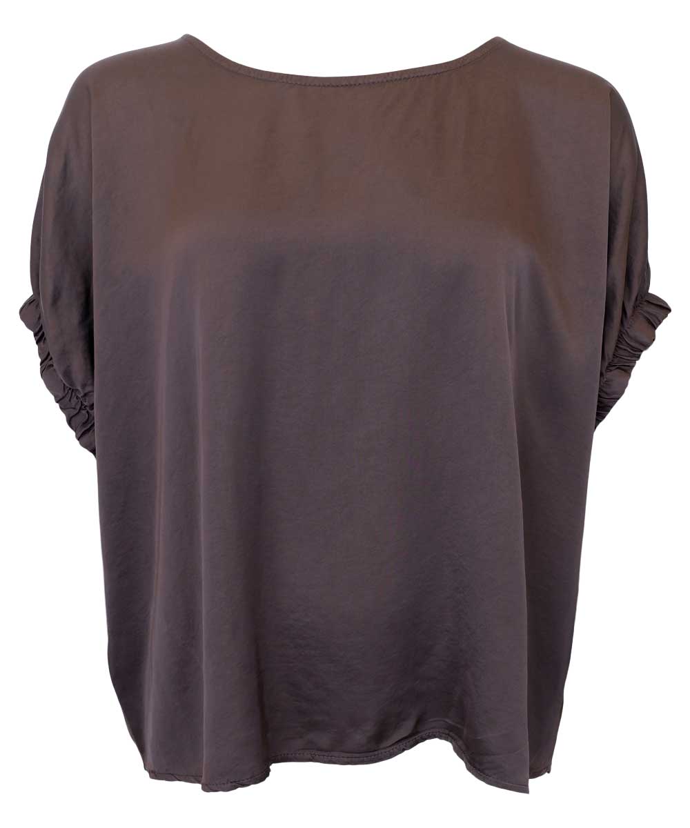 Mabel är en härlig topp i viskossatin från Black Colour. Toppen har rund halsringning, korta ärmar med lös resår i ärmsluten och en enkel siluett.