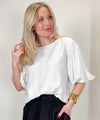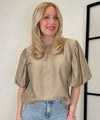Molly är en fin blus med puffärmar från Cosy House. Blusen har rund halsringing, halvlånga puffärmar och en rak enkel passform.