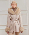 Olivia är en fin kappa från Hollies. Kappan har en rak silhuett, är dubbelknäppt och stängs med en knapp i halsen, avtagbar fuskpäls runt huvan och vid ärmsluten samt ett bälte i midjan som ger en feminin look. Normal i storlek.