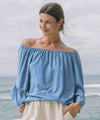 Singa är en härlig offshoulder blus från Ezence. Blusen har vid halsringning, en skön lös passform och 3/4 långa ärmar med volang.