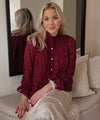 Vacker blus från Chica London med brodyr, spets och fina volanger. Blusen har rund hals, långa ärmar med resår vid handleden och vackra volanger framtill längs knappstängningen.