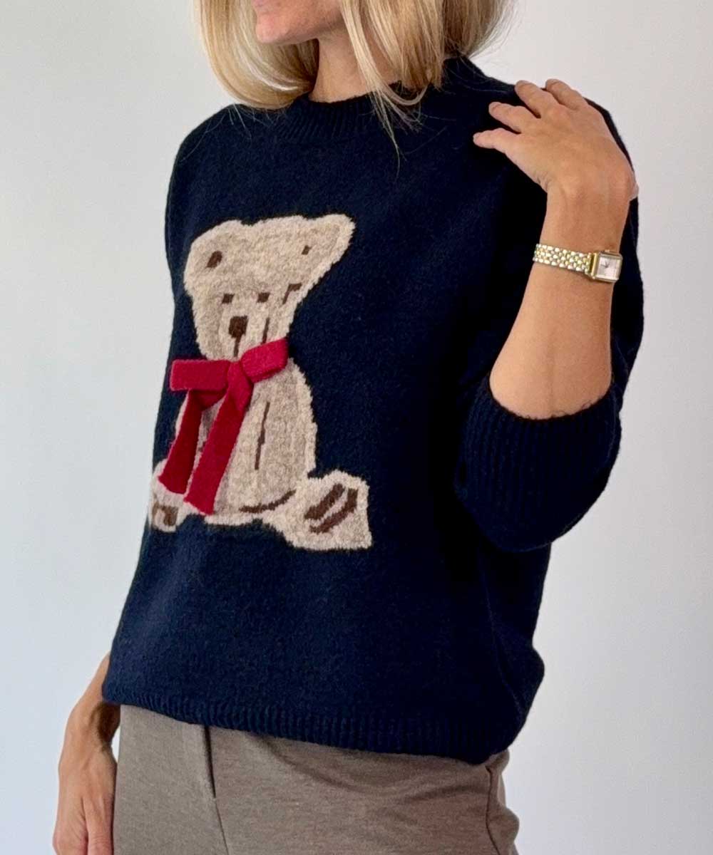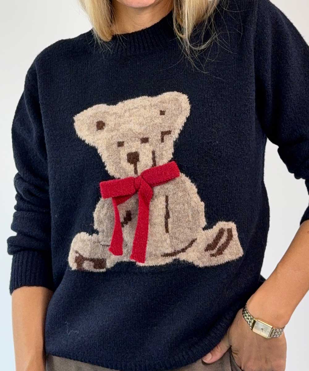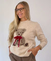 Supergosig stickad tröja från Chica London. Tröjan har rund halsringning, långa ärmar och en söt nalle med rosett framtill. Rak enkel passform med stretch.