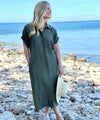 Tegal är en superhärlig klänning i skjortmodell från Ezence. klänningen har skjortkrage, dold knäppning fram och korta ärmar med volangkant. Rynk baktill på ryggen som ger denna klänningen en fin passform.