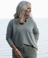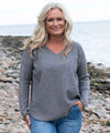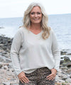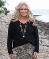 Zen är en mjuk och skön stickad tröja från Ezence. Tröjan har v-ringad hals, långa raka ärmar och har en rak enkel siluett.