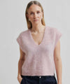 Camryn är en härlig fluffig stickad väst från Second Female. Västen är gjord i en mjuk och stretchig mohairblandning, har en v-ringning och ribbad nederkant med små slitsar i sidorna. Avslappnad skön passform.