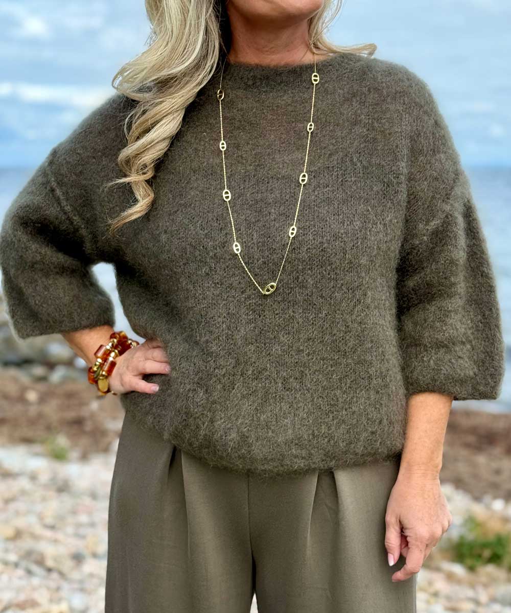 Härlig mohair tröja i lyxig skön kvalitet från Ezence. Tröjan har rund halsringning, halvlånga vida ärmar och en skön boxig passform. Denna mohair tröja är både ett lyxigt och värmande plagg som kombinerar komfort med stil. En tidlös tröja som är lika snygg till kjol som till jeans och fungerar året om.