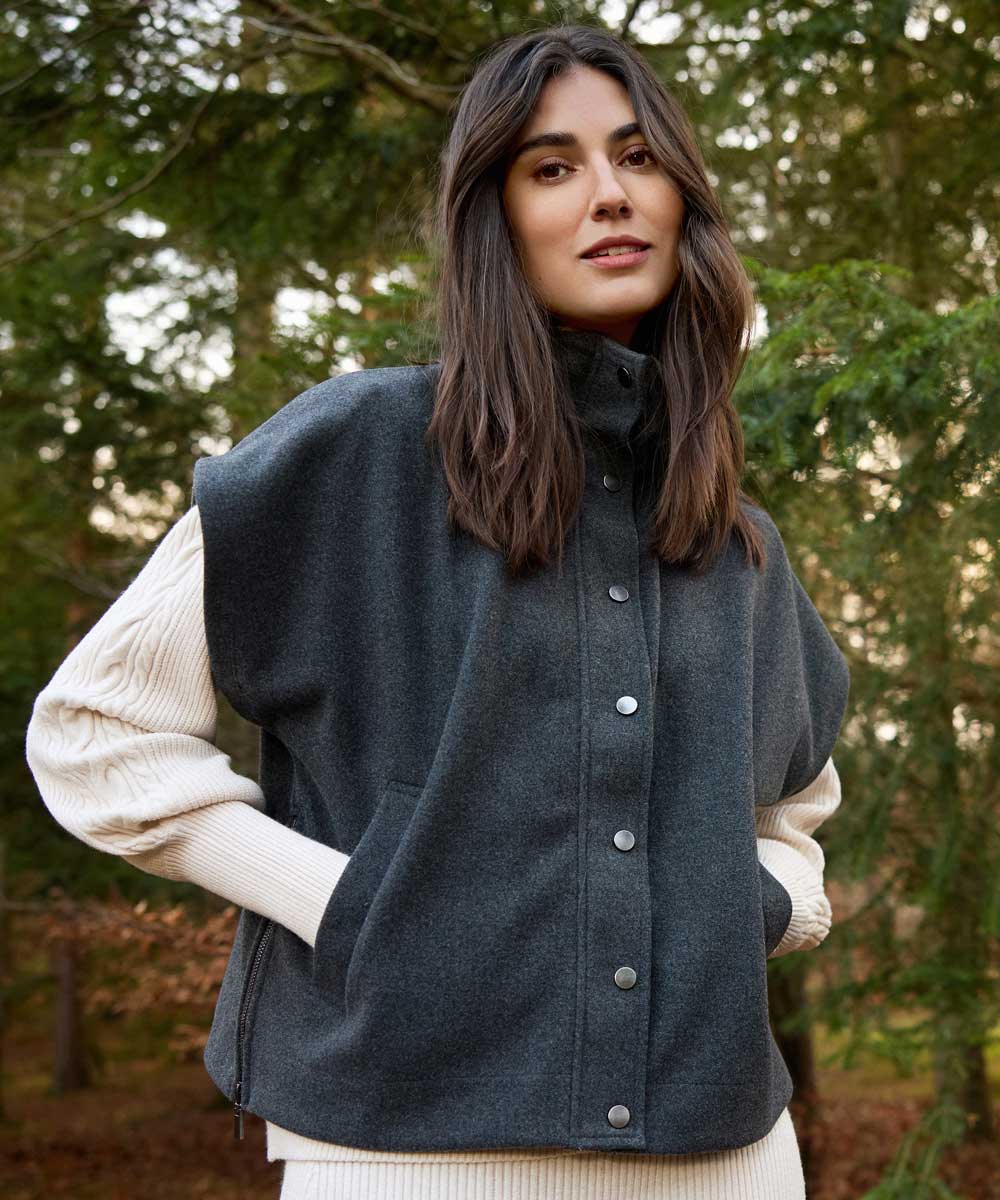 VAGNA 1 är en väst från Soyaconcept. Västen har en hög ståkrage och knappstängning framtill. En rak enkel siluett. Styla till ett par skräddarsydda byxor för ett raffinerat utseende eller över en polokrage för extra värme och stil.