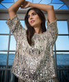 ANGEL 1 är en vacker blus från Soyaconcept. Blusen har en rund halsringning, korta ärmar och täck av skimrande paljetter. En rak enkel passform men så snygg till både skräddarsydda byxor eller en elegant kjol.