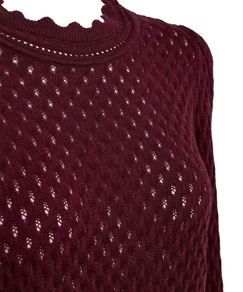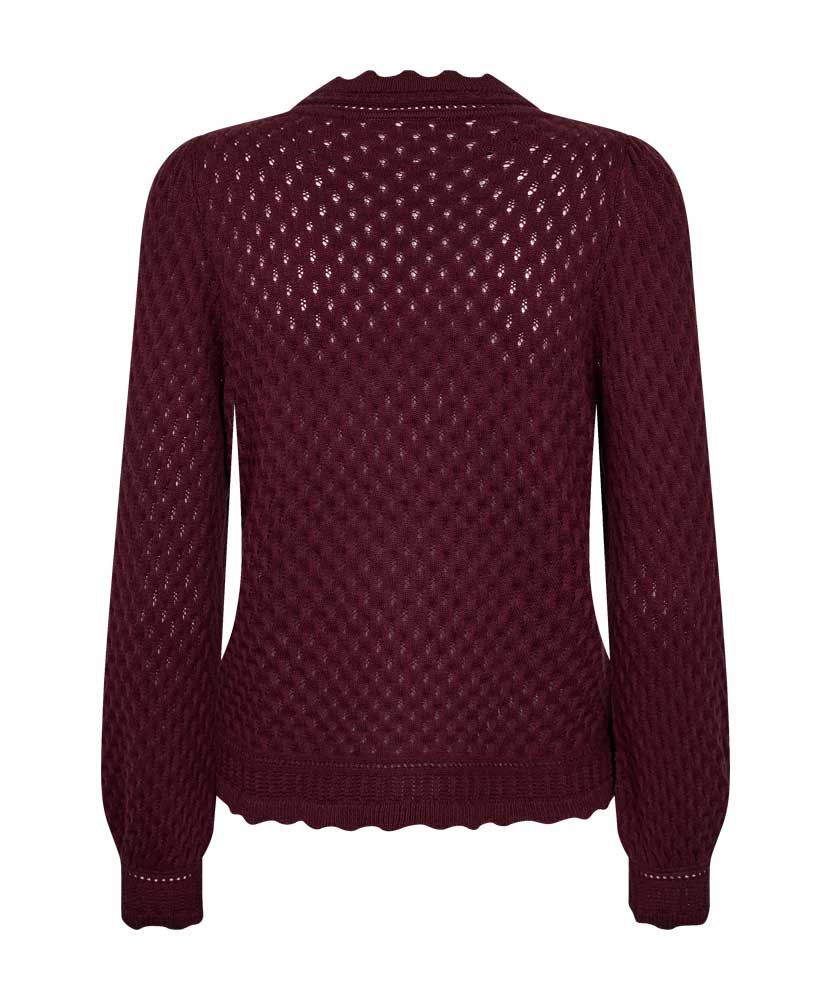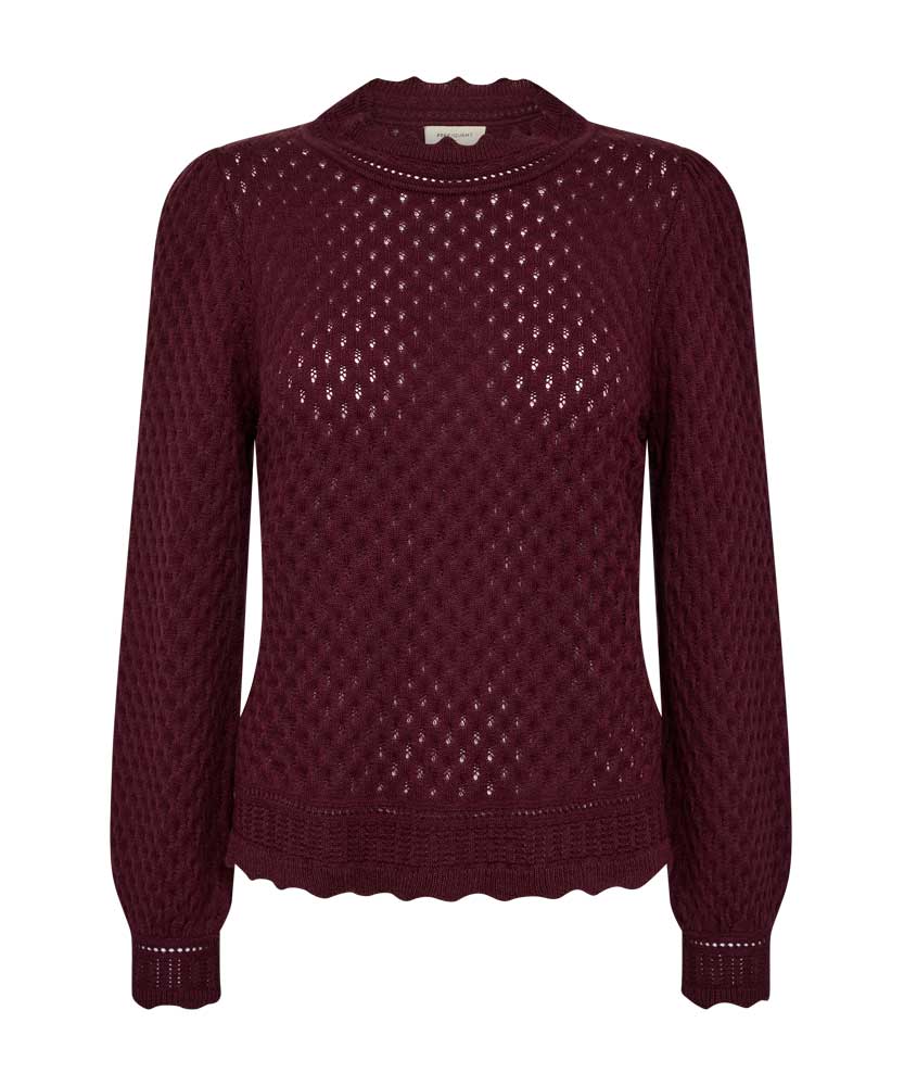 Gina är en härlig tröja från Freequent i ett mjukt, finstickat material med ett elegant mönster. Tröjan har en enkel siluett med rund halsringning med liten volangkant, långa puffärmar och en rak passform