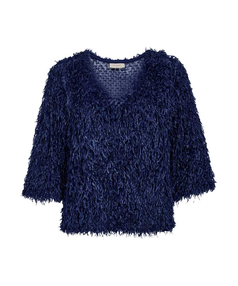 Nola är en cool blus från Freequent i ett mjukt sammetstyg med härlig franseffekt. Blusen har en enkel siluett med trekvartsärmar, v-ringning och en elegant, avslappnad passform.