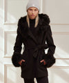 Olivia är en fin kappa från Hollies. Kappan har en rak silhuett, är dubbelknäppt och stängs med en knapp i halsen, avtagbar fuskpäls runt huvan och vid ärmsluten samt ett bälte i midjan som ger en feminin look. Normal i storlek.