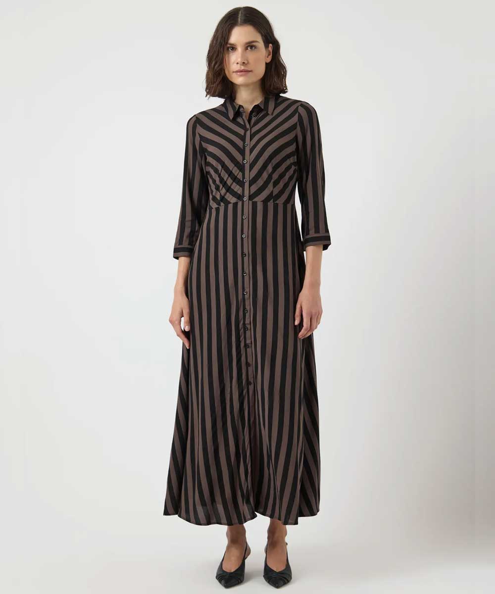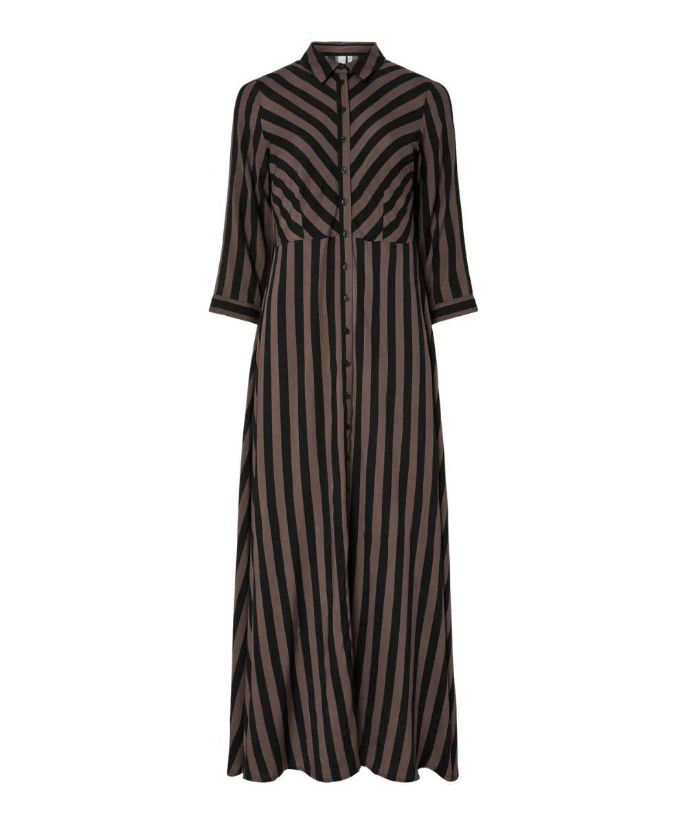 Savanna är en fin lång skjortklänning tidlös design från YAS. Klänningen har skjortkrage, knäppning framtill, 7/8-ärmar, skärning i midjan och en lös passform. Detta är den perfekta basklänningen att ha i garderoben.