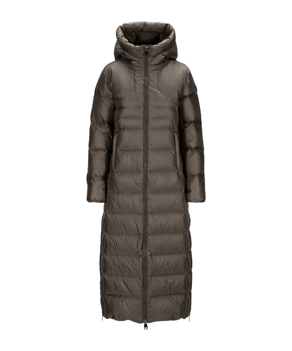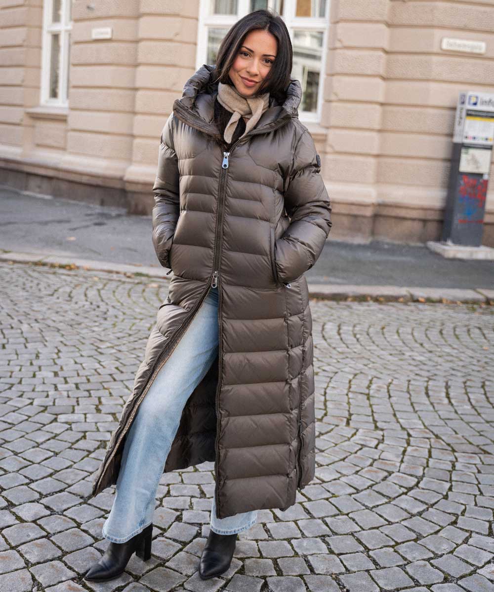 Camille Long är en snygg och trendig hellång dunfylld kappa från Monel. Denna härliga kappa ger skydd mot väder och vind från topp till tå. Kappan har en smal passform med feminin silhuett, permanenta sidodragkedjor, tvåvägsdragkedja fram, rymliga fickor med dragkedja och vattenavvisande egenskaper. Normal i storlek.