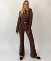 Superhärlig stretch byxa från Chica London. Byxorna här en dra-på-modell med fickor fram, hellånga utsvängda ben och ett fint guldspänne i midjan.